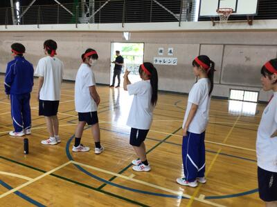 生徒会執行部の企画・運営のもと,全校生徒で伝言ゲームや障害物リレーを楽しみました。