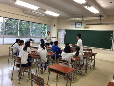 係合同活動は今年度からの生徒会の取組です。この取組は,「各学年の係が互いに関わり合って活動することで,関係を構築しながら人間性を育むこと」,「自主的活動を意識させ,自主性,リーダー性を育成すること」を目的に行っています。
