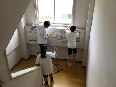 また,3校時は大掃除を行いました。校舎をきれいにして,夏休み明けの勉強をがんばります!